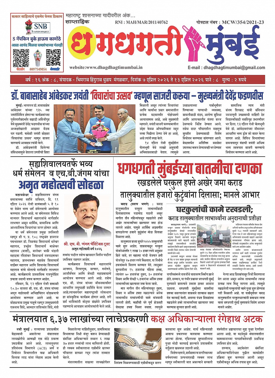 7-04-2026 to 13-04-2026 April 07, 2026 << First << 1 >> Last >> Page 1Page 2Page 3Page 4 × 7-04-2026 to 13-04-2026 << First << 1 >> Last >> Dhagdhagti Mumbai 7 TO 13 APRIL 2026_Page_1Dhagdhagti Mumbai 7 TO 13 APRIL 2026_Page_2Dhagdhagti Mumbai 7 TO 13 APRIL 2026_Page_3Dhagdhagti Mumbai 7 TO 13 APRIL 2026_Page_4 Dhagdhagti Mumbai 7 TO 13 APRIL 2026_Page_1