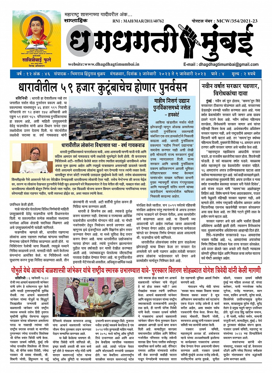 3-01-2023 to 9-01-2023 January 03, 2023 << First << 1 >> Last >> Page 1Page 2Page 3Page 4 × 3-01-2023 to 9-01-2023 << First << 1 >> Last >> DHAGDHAGATI MUMBAI 3 to 9 jan 2023_Page_1DHAGDHAGATI MUMBAI 3 to 9 jan 2023_Page_2DHAGDHAGATI MUMBAI 3 to 9 jan 2023_Page_3DHAGDHAGATI MUMBAI 3 to 9 jan 2023_Page_4 DHAGDHAGATI MUMBAI 3 to 9 jan 2023_Page_1