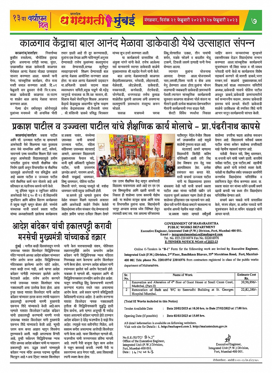 21-02-2023 to 27-02-2023 Page: 7 February 21, 2023 << First << 7 >> Last >> Page 1Page 2Page 3Page 4Page 5Page 6Page 7Page 8 × 21-02-2023 to 27-02-2023 << First << 7 >> Last >> Dhagdhagti Mumbai 21 to 27 feb 2023_Page_1Dhagdhagti Mumbai 21 to 27 feb 2023_Page_2Dhagdhagti Mumbai 21 to 27 feb 2023_Page_3Dhagdhagti Mumbai 21 to 27 feb 2023_Page_4Dhagdhagti Mumbai 21 to 27 feb 2023_Page_5Dhagdhagti Mumbai 21 to 27 feb 2023_Page_6Dhagdhagti Mumbai 21 to 27 feb 2023_Page_7Dhagdhagti Mumbai 21 to 27 feb 2023_Page_8 Dhagdhagti Mumbai 21 to 27 feb 2023_Page_7