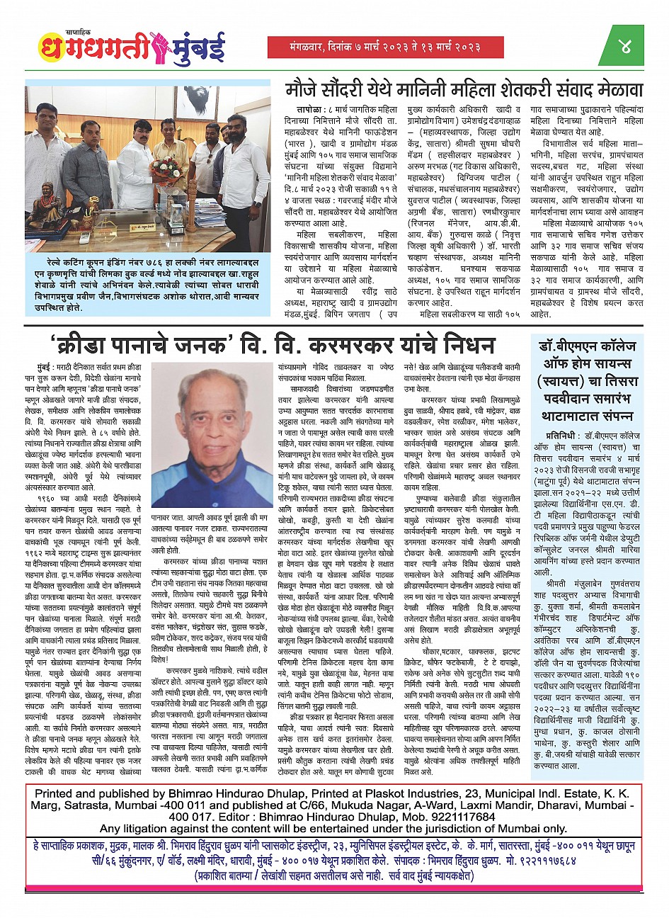 7-03-2023 to 13-03-2023 Page: 4 March 07, 2023 << First << 4 >> Last >> Page 1Page 2Page 3Page 4 × 7-03-2023 to 13-03-2023 << First << 4 >> Last >> DHAGDHAGATI MUMBAI 7 to13 MARCH 2023_Page_1DHAGDHAGATI MUMBAI 7 to13 MARCH 2023_Page_2DHAGDHAGATI MUMBAI 7 to13 MARCH 2023_Page_3DHAGDHAGATI MUMBAI 7 to13 MARCH 2023_Page_4 DHAGDHAGATI MUMBAI 7 to13 MARCH 2023_Page_4