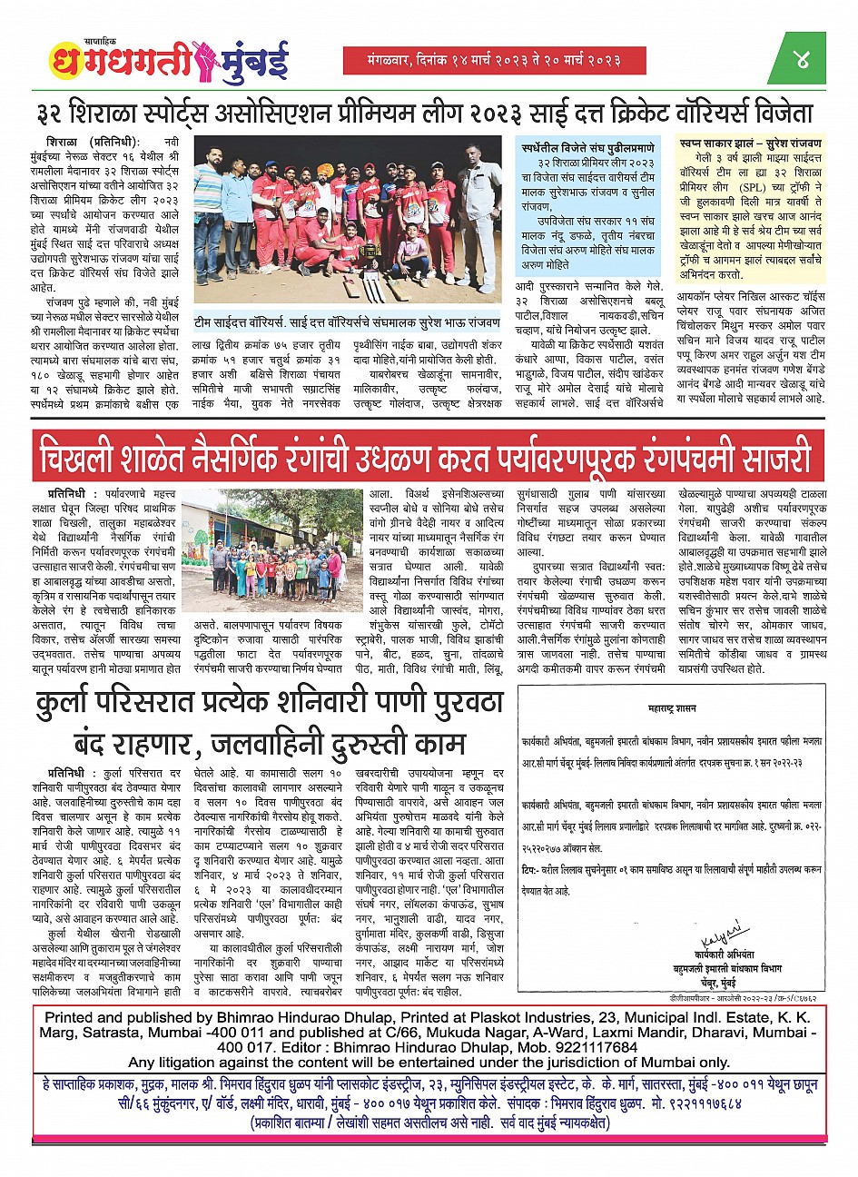 14-03-2023 to 20-03-2023 Page: 4 March 14, 2023 << First << 4 >> Last >> Page 1Page 2Page 3Page 4 × 14-03-2023 to 20-03-2023 << First << 4 >> Last >> DHAGDHAGATI MUMBAI 14 to 20 MARCH 2023_Page_1DHAGDHAGATI MUMBAI 14 to 20 MARCH 2023_Page_2DHAGDHAGATI MUMBAI 14 to 20 MARCH 2023_Page_3DHAGDHAGATI MUMBAI 14 to 20 MARCH 2023_Page_4 DHAGDHAGATI MUMBAI 14 to 20 MARCH 2023_Page_4