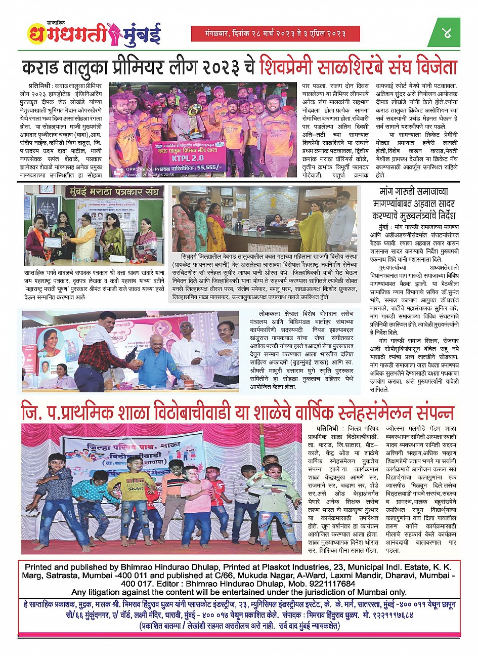 28-03-2023 to 3-04-2023 Page: 4 March 28, 2023 << First << 4 >> Last >> Page 1Page 2Page 3Page 4 × 28-03-2023 to 3-04-2023 << First << 4 >> Last >> Dhagdhagti Mumbai 28 march 2023 to 3 april 2023_Page_1Dhagdhagti Mumbai 28 march 2023 to 3 april 2023_Page_2Dhagdhagti Mumbai 28 march 2023 to 3 april 2023_Page_3Dhagdhagti Mumbai 28 march 2023 to 3 april 2023_Page_4 Dhagdhagti Mumbai 28 march 2023 to 3 april 2023_Page_4