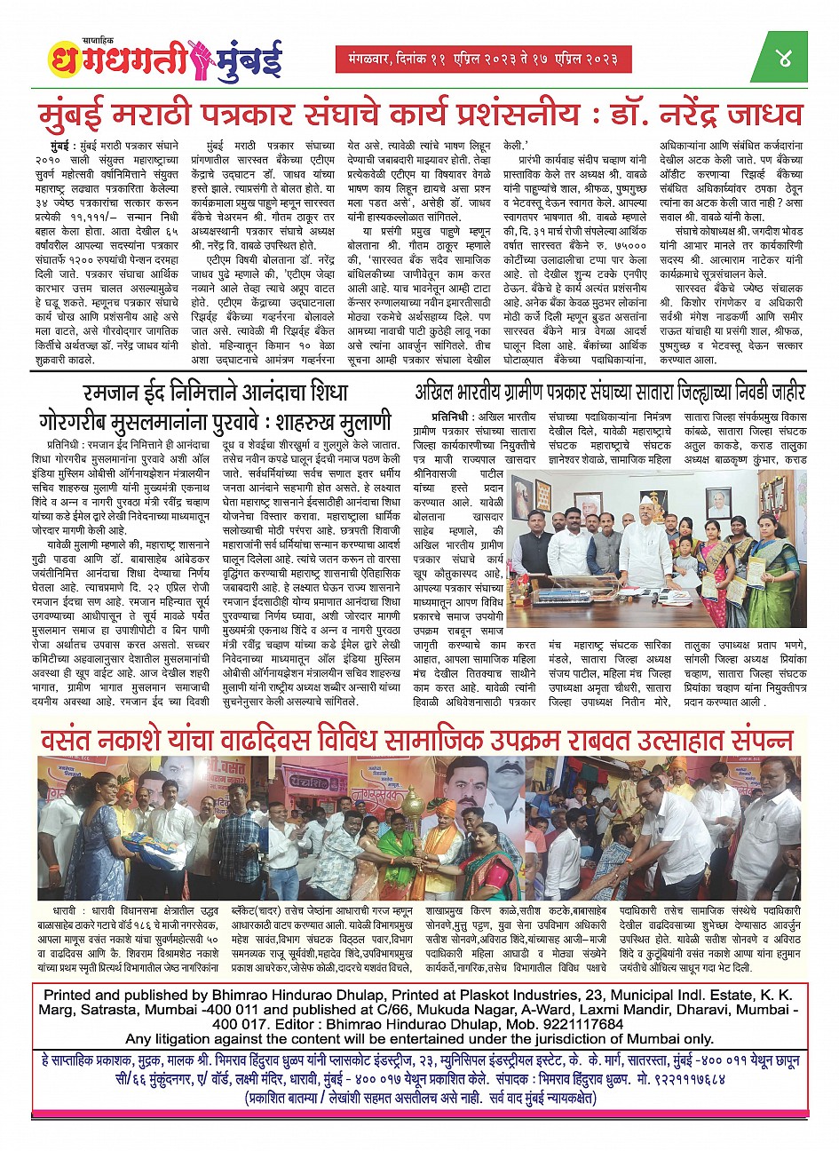 11-04-2023 to 17-04-2023 Page: 4 April 11, 2023 << First << 4 >> Last >> Page 1Page 2Page 3Page 4 × 11-04-2023 to 17-04-2023 << First << 4 >> Last >> Dhagdhagti Mumbai 11 to 17 April 2023_Page_1Dhagdhagti Mumbai 11 to 17 April 2023_Page_2Dhagdhagti Mumbai 11 to 17 April 2023_Page_3Dhagdhagti Mumbai 11 to 17 April 2023_Page_4 Dhagdhagti Mumbai 11 to 17 April 2023_Page_4