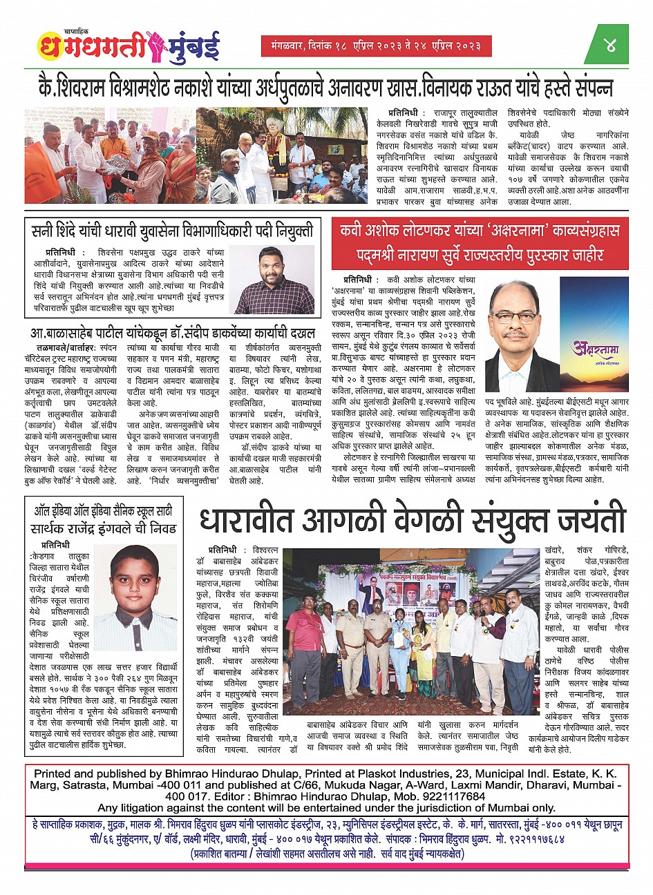 18-04-2023 to 24-04-2023 Page: 4 April 18, 2023 << First << 4 >> Last >> Page 1Page 2Page 3Page 4 × 18-04-2023 to 24-04-2023 << First << 4 >> Last >> Dhagdhagti Mumbai 18 to 24 April 2023_Page_1Dhagdhagti Mumbai 18 to 24 April 2023_Page_2Dhagdhagti Mumbai 18 to 24 April 2023_Page_3Dhagdhagti Mumbai 18 to 24 April 2023_Page_4 Dhagdhagti Mumbai 18 to 24 April 2023_Page_4