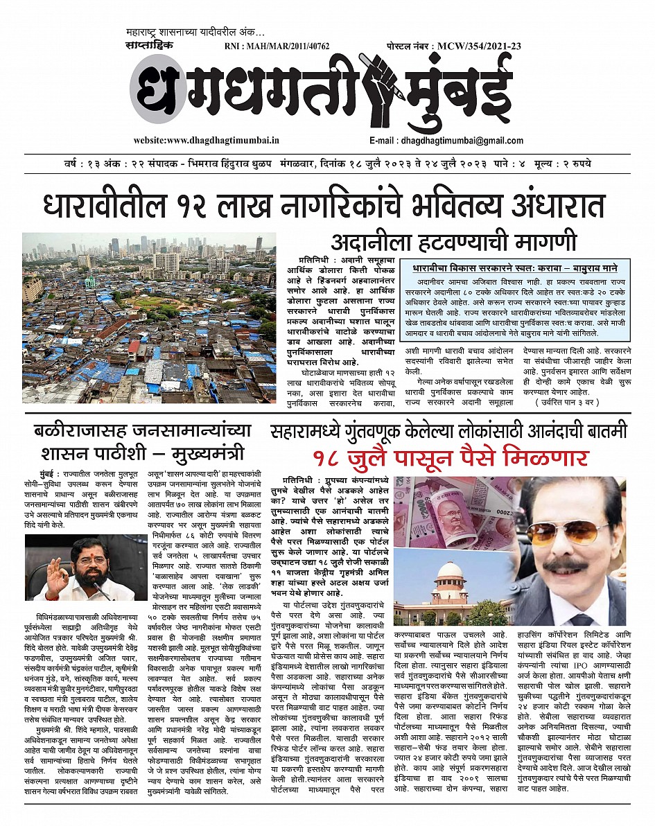18-06-2023 to 24-06-2023 July 18, 2022 << First << 1 >> Last >> Page 1Page 2Page 3Page 4 × 18-06-2023 to 24-06-2023 << First << 1 >> Last >> Dhagdhagti Mumbai 18 to 24 july 2023_Page_1Dhagdhagti Mumbai 18 to 24 july 2023_Page_2Dhagdhagti Mumbai 18 to 24 july 2023_Page_3Dhagdhagti Mumbai 18 to 24 july 2023_Page_4 Dhagdhagti Mumbai 18 to 24 july 2023_Page_1