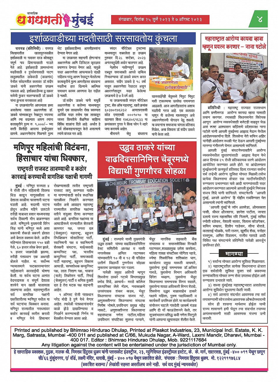 25-07-2023 to 7-08-2023 Page: 4 July 25, 2023 << First << 4 >> Last >> Page 1Page 2Page 3Page 4 × 25-07-2023 to 7-08-2023 << First << 4 >> Last >> Dhagdhagti Mumbai 25 july2023 to 7 august 2023_Page_1Dhagdhagti Mumbai 25 july2023 to 7 august 2023_Page_2Dhagdhagti Mumbai 25 july2023 to 7 august 2023_Page_3Dhagdhagti Mumbai 25 july2023 to 7 august 2023_Page_4 Dhagdhagti Mumbai 25 july2023 to 7 august 2023_Page_4