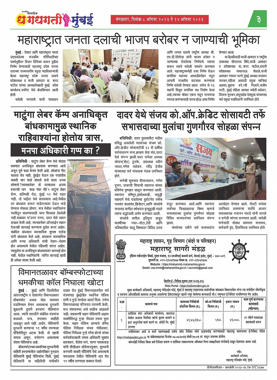 8-08-2023 to 14-08-2023 Page: 3 August 08, 2023 << First << 3 >> Last >> Page 1Page 2Page 3Page 4 × 8-08-2023 to 14-08-2023 << First << 3 >> Last >> Dhagdhagti Mumbai 8 to 14 august 2023_Page_1Dhagdhagti Mumbai 8 to 14 august 2023_Page_2Dhagdhagti Mumbai 8 to 14 august 2023_Page_3Dhagdhagti Mumbai 8 to 14 august 2023_Page_4 Dhagdhagti Mumbai 8 to 14 august 2023_Page_3