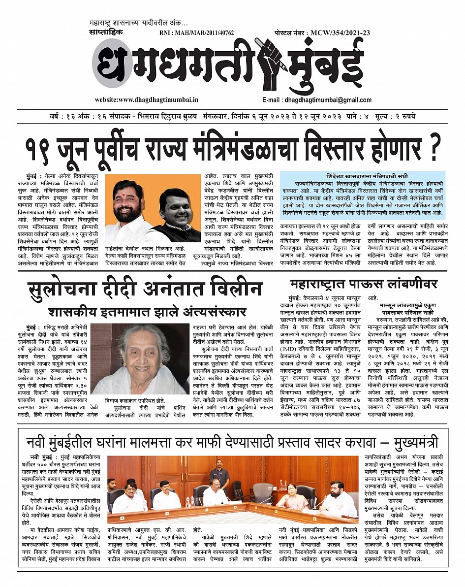 6-06-2023 to 12-06-2023 June 06, 2023 << First << 1 >> Last >> Page 1Page 2Page 3Page 4 × 6-06-2023 to 12-06-2023 << First << 1 >> Last >> Dhagdhagti Mumbai 6 to12 june 2023_Page_1Dhagdhagti Mumbai 6 to12 june 2023_Page_2Dhagdhagti Mumbai 6 to12 june 2023_Page_3Dhagdhagti Mumbai 6 to12 june 2023_Page_4 Dhagdhagti Mumbai 6 to12 june 2023_Page_1