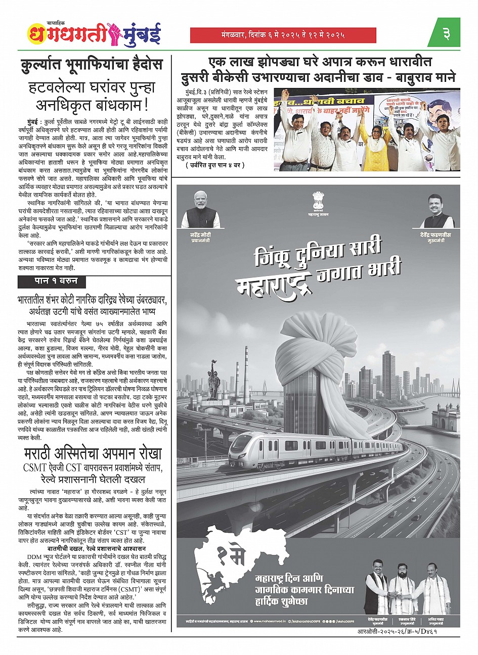 6-05-2025 to 12-05-2025 Page: 3 May 06, 2025 << First << 3 >> Last >> Page 1Page 2Page 3Page 4 × 6-05-2025 to 12-05-2025 << First << 3 >> Last >> Dhagdhagati Mumbai 6 to 12 may 2025_Page_1Dhagdhagati Mumbai 6 to 12 may 2025_Page_2Dhagdhagati Mumbai 6 to 12 may 2025_Page_3Dhagdhagati Mumbai 6 to 12 may 2025_Page_4 Dhagdhagati Mumbai 6 to 12 may 2025_Page_3