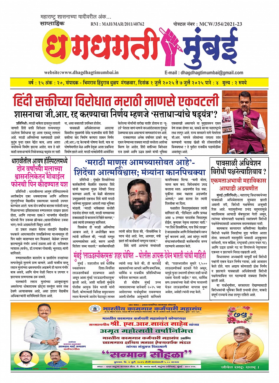 1-07-2025 to 7-07-2025 July 01, 2025 << First << 1 >> Last >> Page 1Page 2Page 3Page 4 × 1-07-2025 to 7-07-2025 << First << 1 >> Last >> DHAGDHAGATI MUMBAI 1 to 7 july 2025_Page_1DHAGDHAGATI MUMBAI 1 to 7 july 2025_Page_2DHAGDHAGATI MUMBAI 1 to 7 july 2025_Page_3DHAGDHAGATI MUMBAI 1 to 7 july 2025_Page_4 DHAGDHAGATI MUMBAI 1 to 7 july 2025_Page_1
