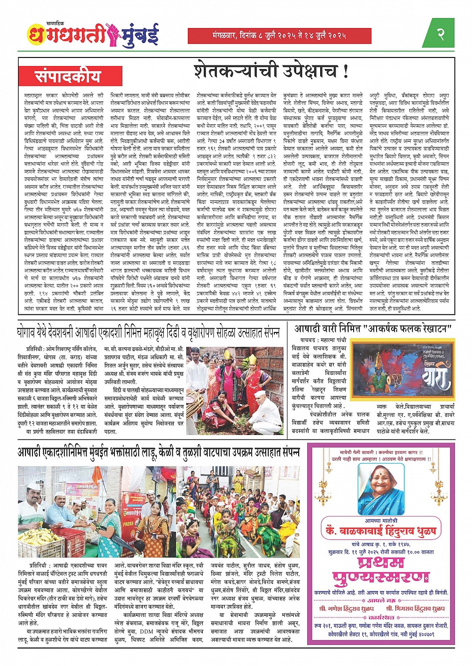 8-07-2025 to 14-07-2025 Page: 2 July 08, 2025 << First << 2 >> Last >> Page 1Page 2Page 3Page 4 × 8-07-2025 to 14-07-2025 << First << 2 >> Last >> DHAGDHAGATI MUMBAI 8 to 14 july 2025_Page_1DHAGDHAGATI MUMBAI 8 to 14 july 2025_Page_2DHAGDHAGATI MUMBAI 8 to 14 july 2025_Page_3DHAGDHAGATI MUMBAI 8 to 14 july 2025_Page_4 DHAGDHAGATI MUMBAI 8 to 14 july 2025_Page_2