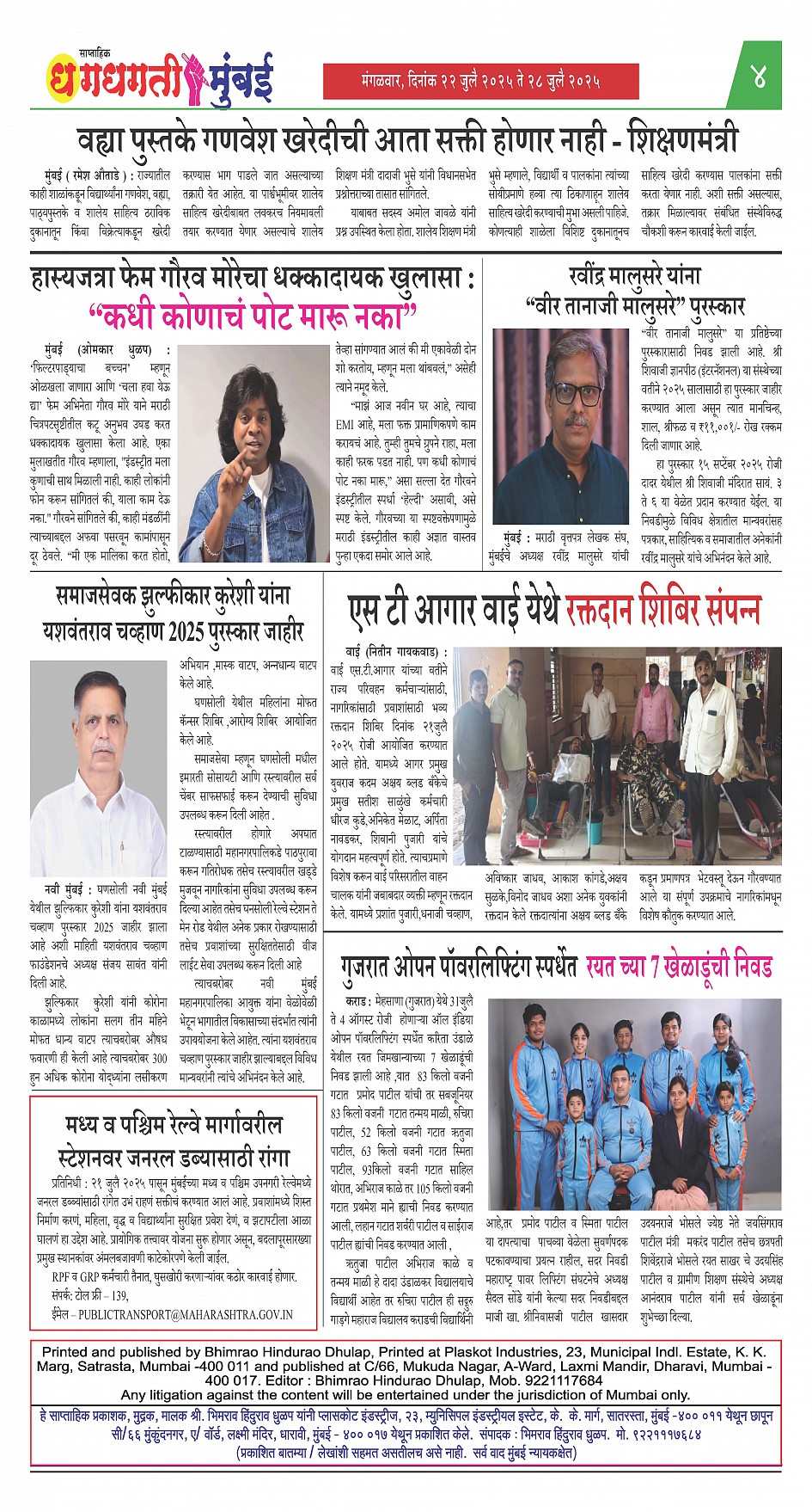 22-07-2025 to 28-07-2025 Page: 4 July 22, 2025 << First << 4 >> Last >> Page 1Page 2Page 3Page 4 × 22-07-2025 to 28-07-2025 << First << 4 >> Last >> DHAGDHAGATI MUMBAI 22 to 28 july 2025_Page_1DHAGDHAGATI MUMBAI 22 to 28 july 2025_Page_2DHAGDHAGATI MUMBAI 22 to 28 july 2025_Page_3DHAGDHAGATI MUMBAI 22 to 28 july 2025_Page_4 DHAGDHAGATI MUMBAI 22 to 28 july 2025_Page_4